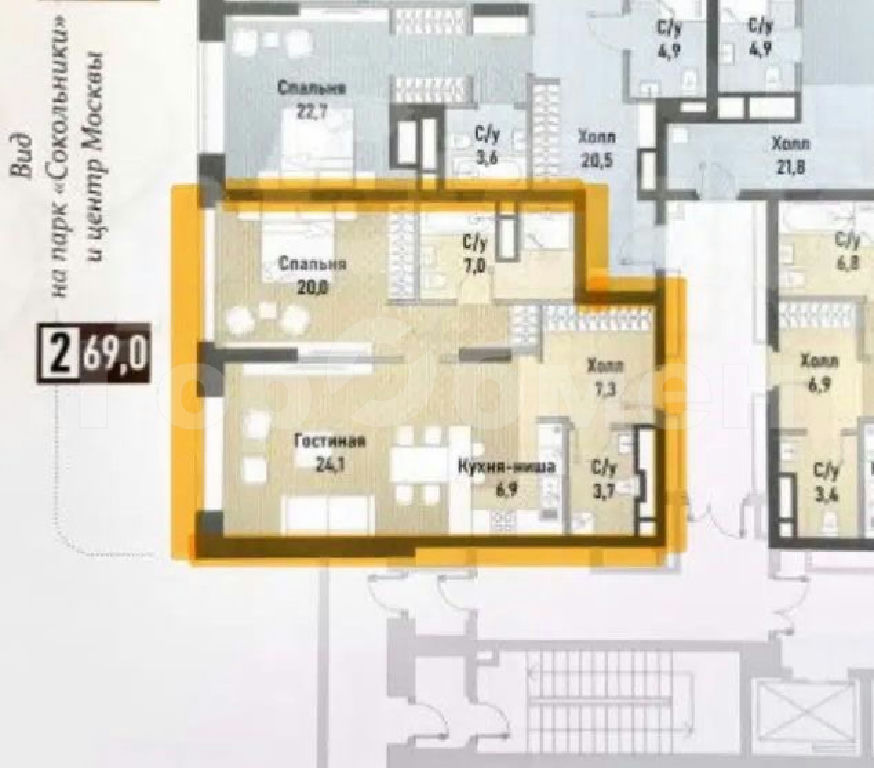 Комнаты: 24.1 20 м2